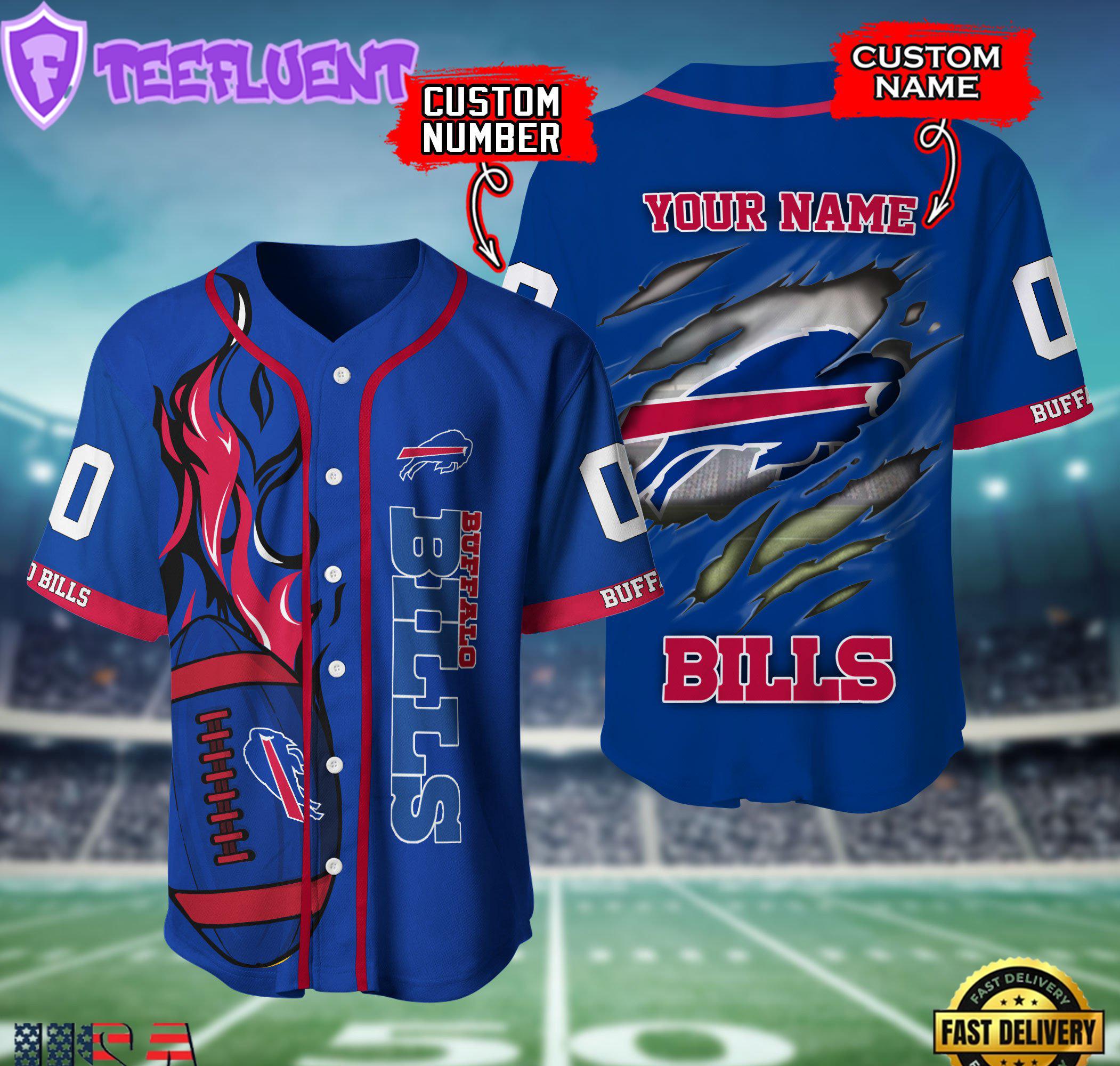 Custom Name Number NFL Buffalo Bills Team Logo Litmited Edition Baseball Jersey