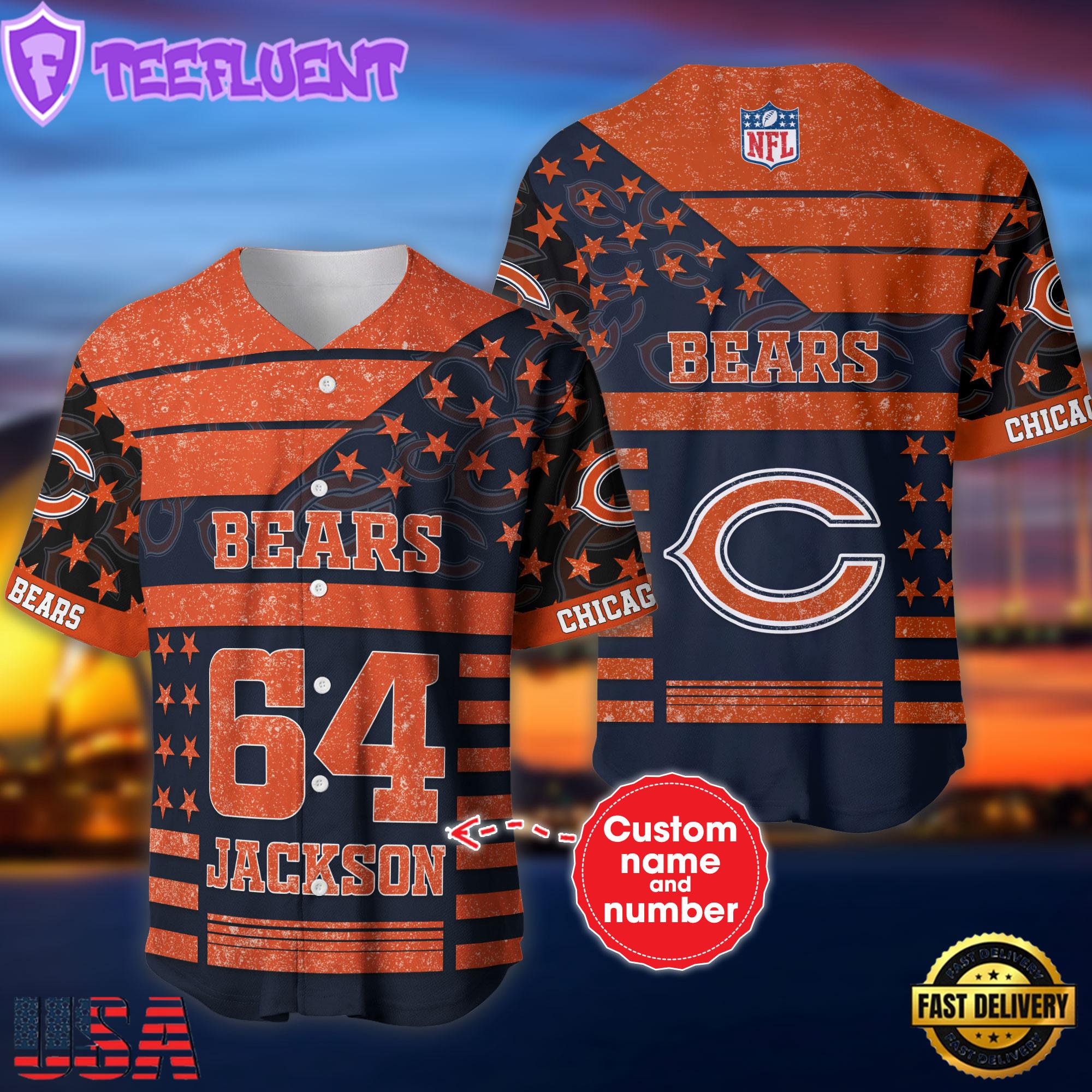 Custom Name Number NFL Chicago Bears American Flag Baseball Jersey
