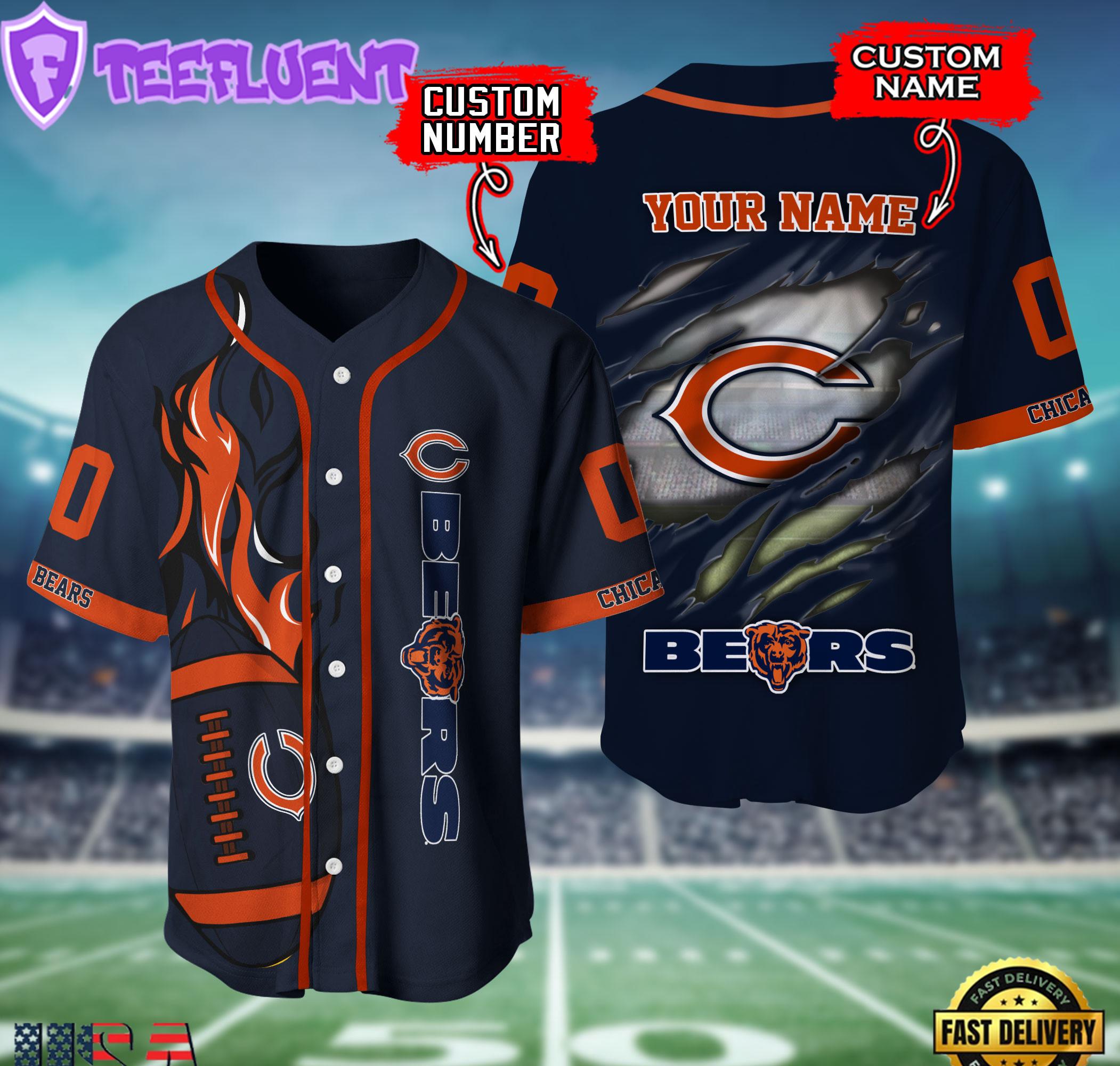 Photos Of Custom Name Number NFL Chicago Bears Team Logo Litmited Edition Baseball Jersey