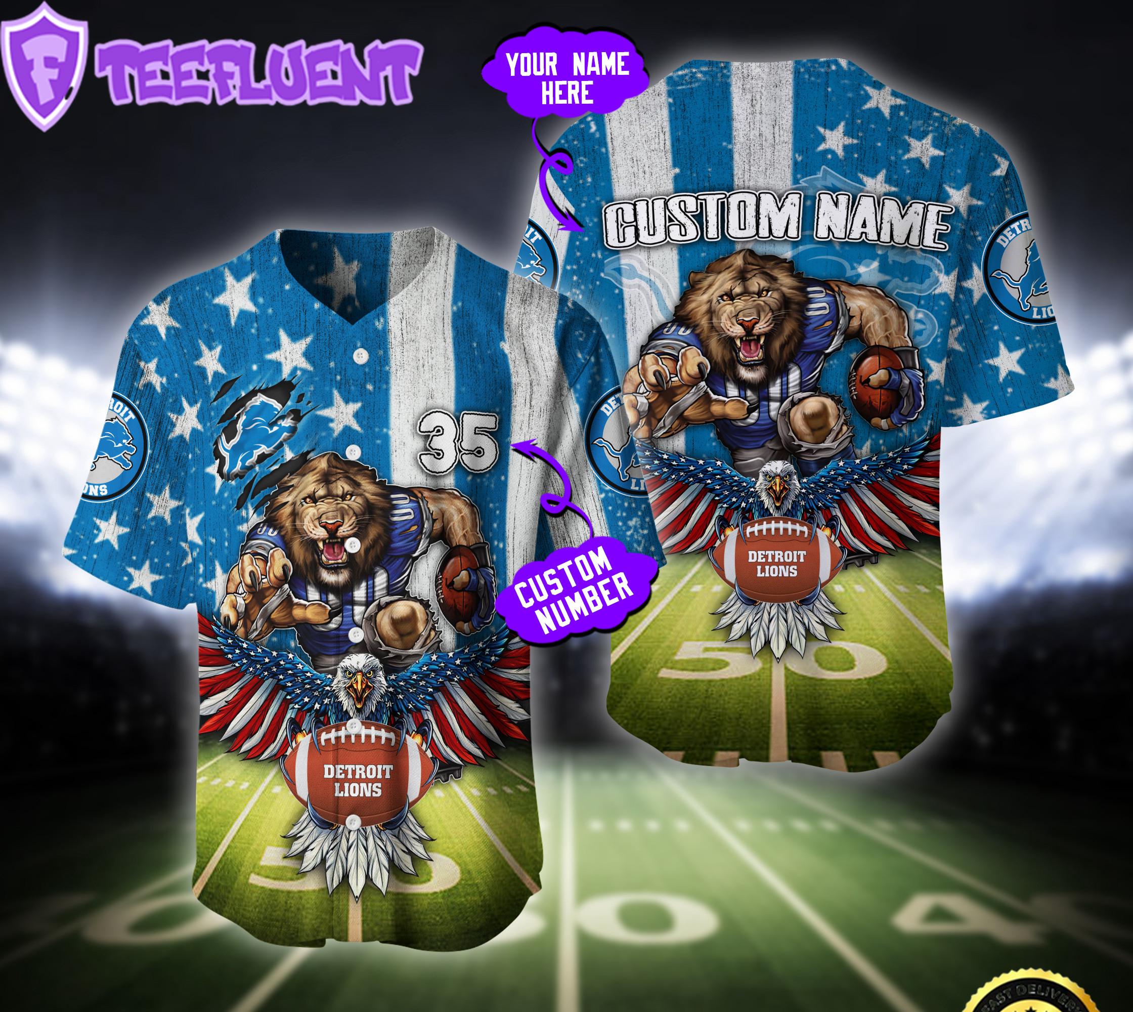 Custom Name Number NFL Detroit Lions Eagle US Flag x Veterans Baseball Jersey