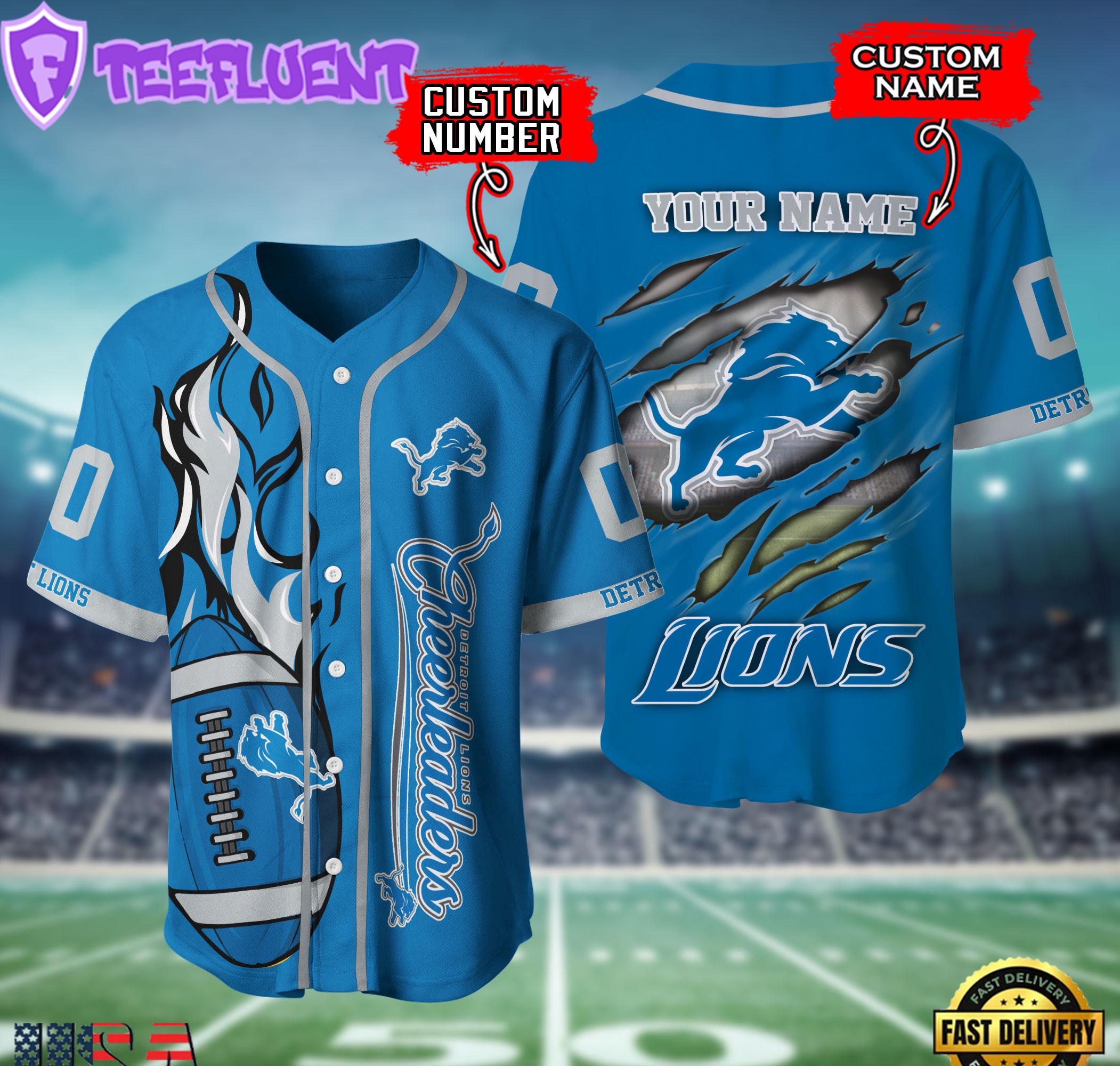Custom Name Number NFL Detroit Lions Team Logo Litmited Edition Baseball Jersey