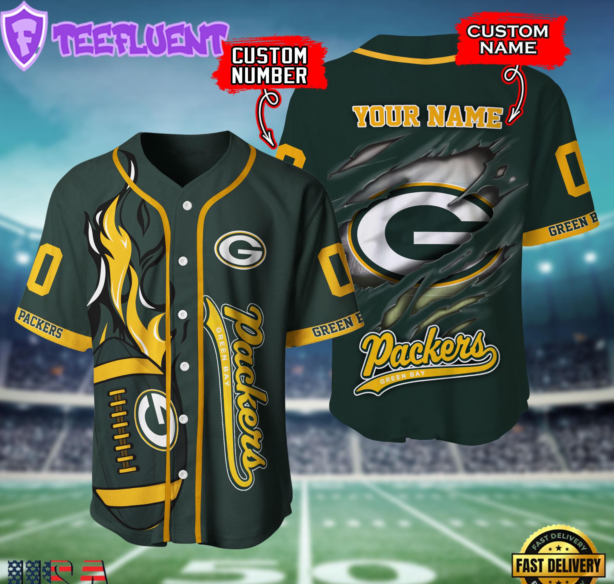 Custom Name Number NFL Green Bay Packers Team Logo Litmited Edition Baseball Jersey