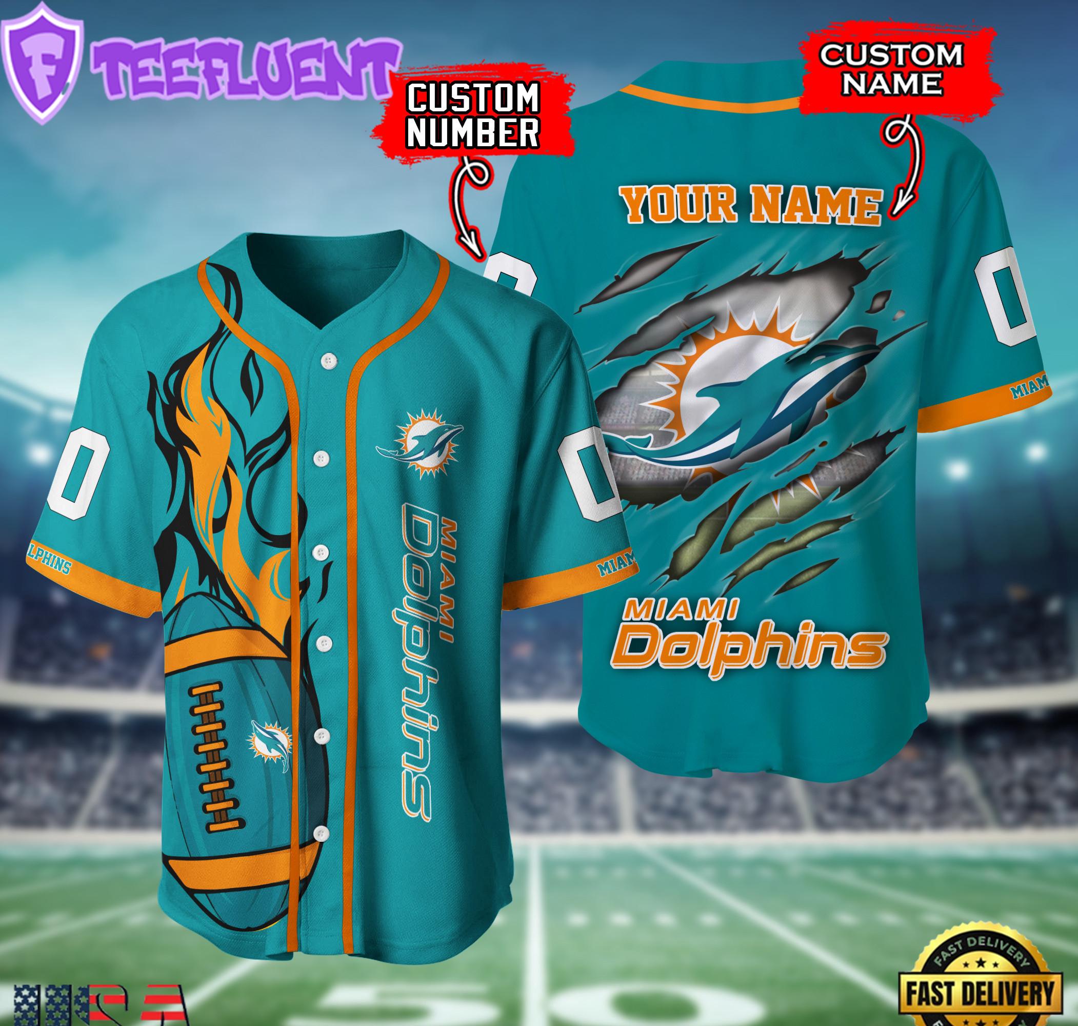 Custom Name Number NFL Miami Dolphins Team Logo Litmited Edition Baseball Jersey