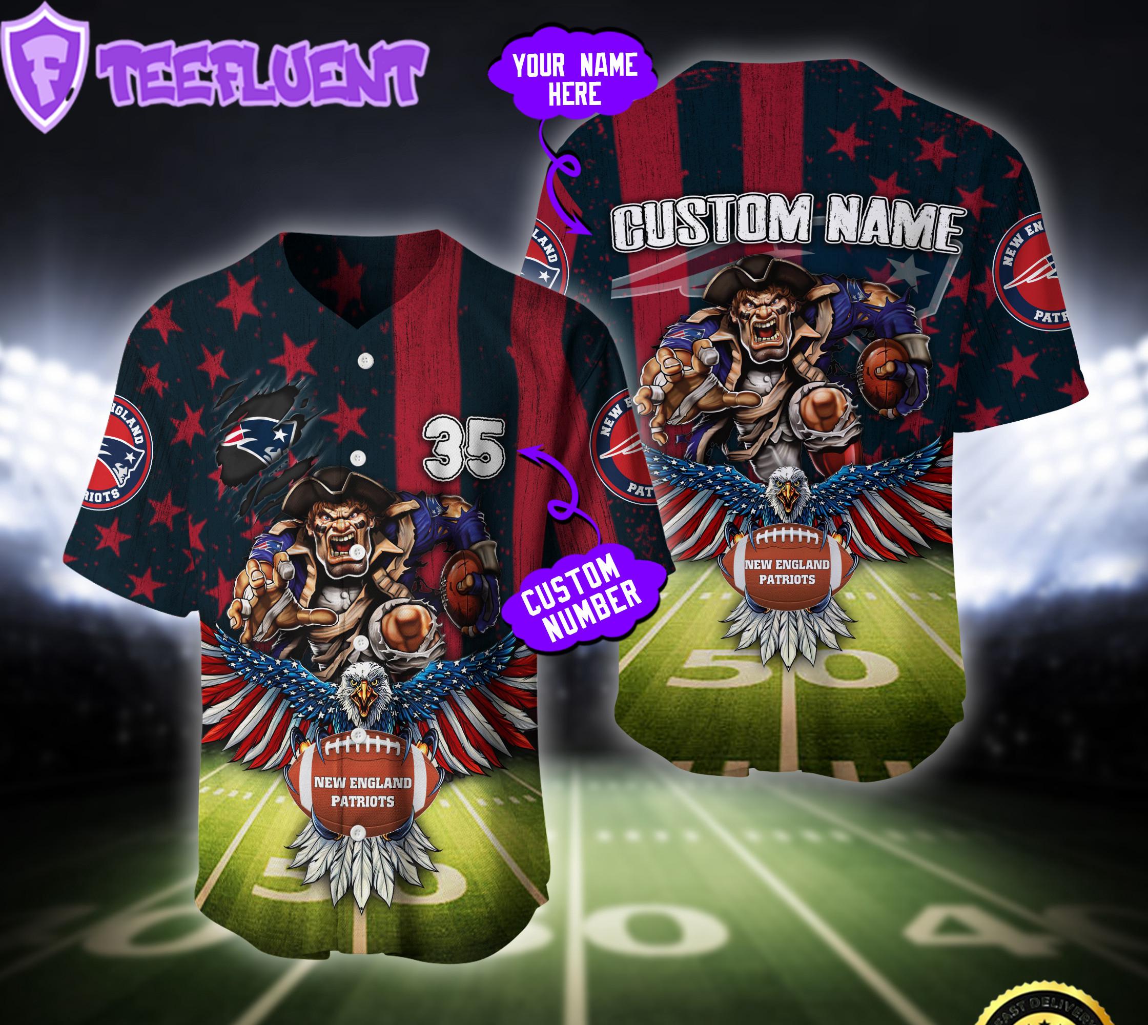 Custom Name Number NFL New England Patriots Eagle US Flag x Veterans Baseball Jersey