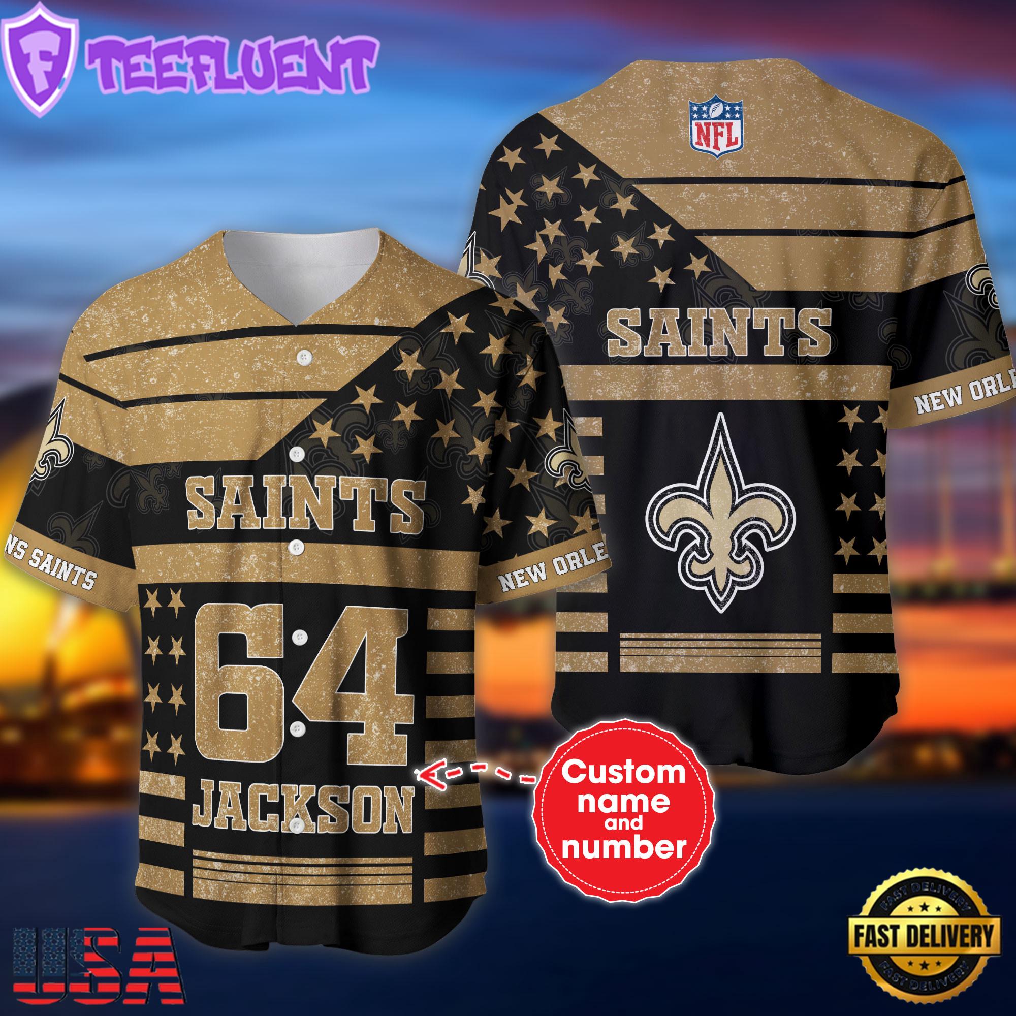 Custom Name Number NFL New Orleans Saints American Flag Baseball Jersey