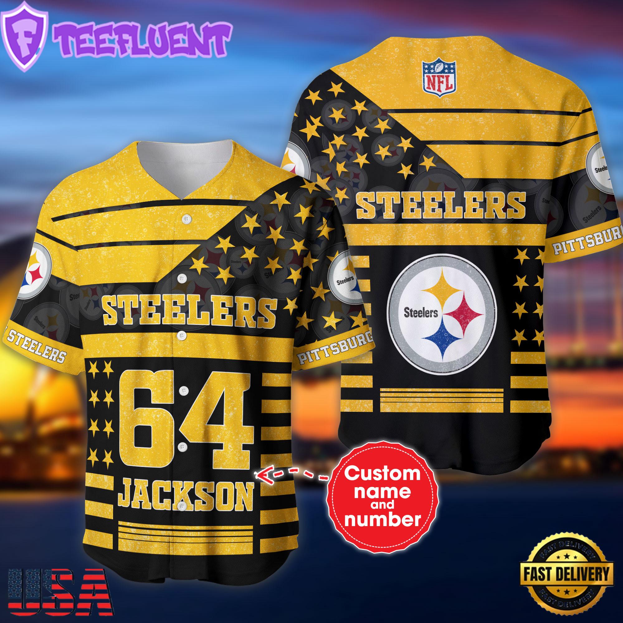 Custom Name Number NFL Pittsburgh Steelers American Flag Baseball Jersey