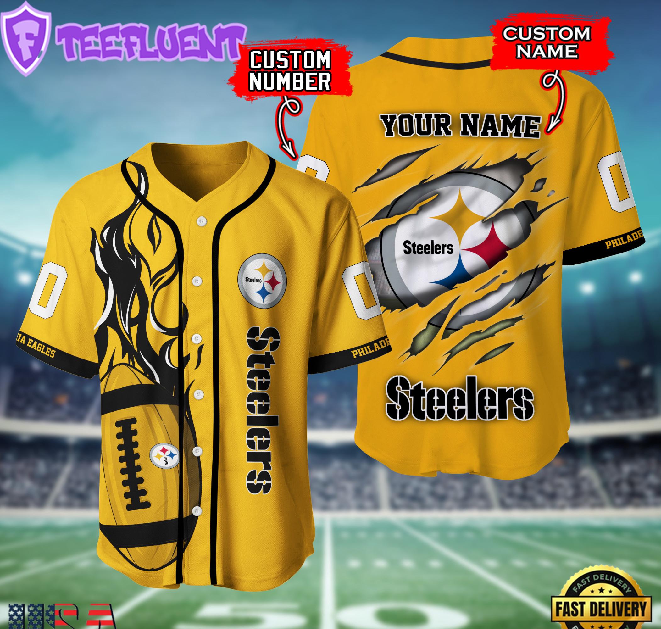 Photos Of Custom Name Number NFL Pittsburgh Steelers Team Logo Litmited Edition Baseball Jersey