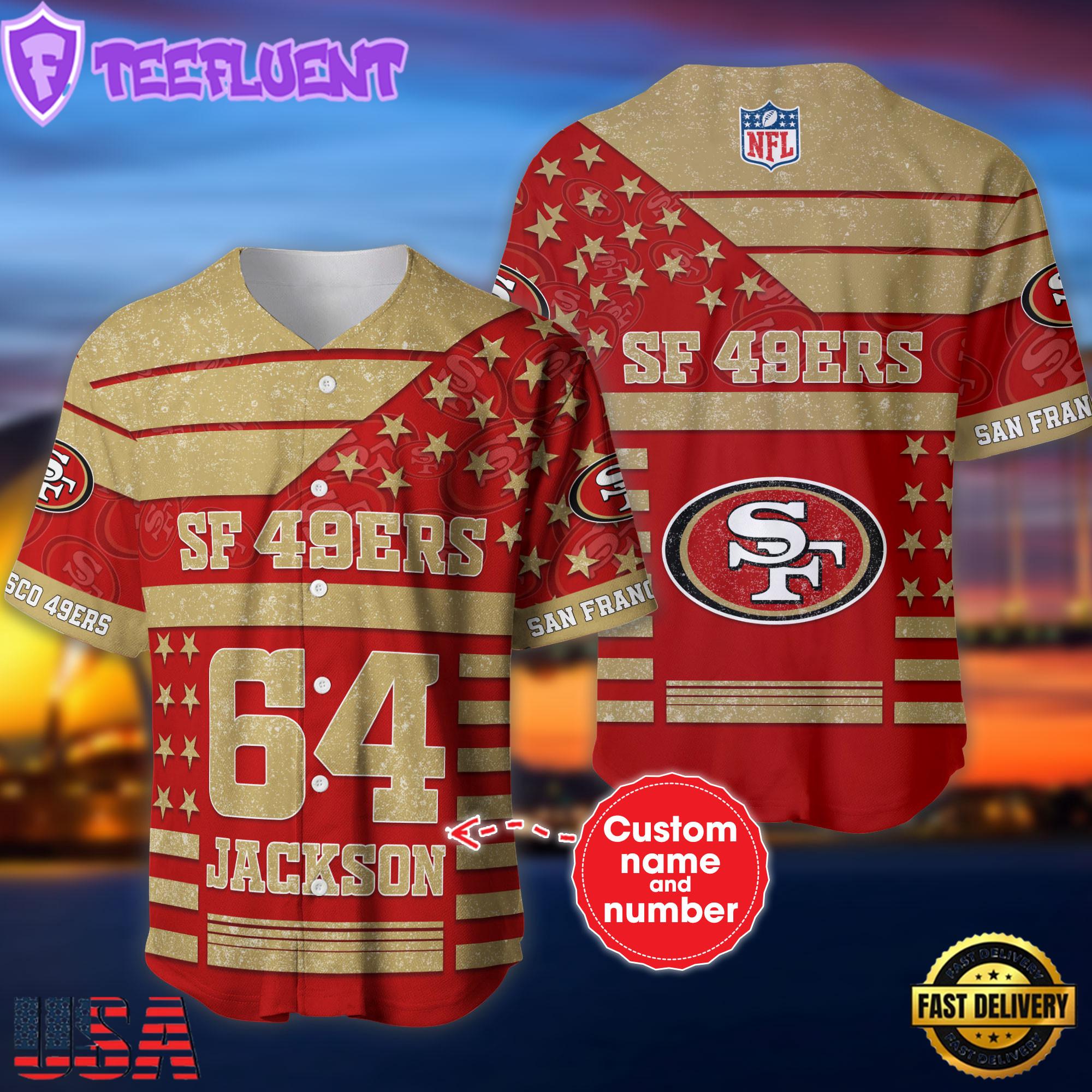Custom Name Number NFL San Francisco 49ers American Flag Baseball Jersey