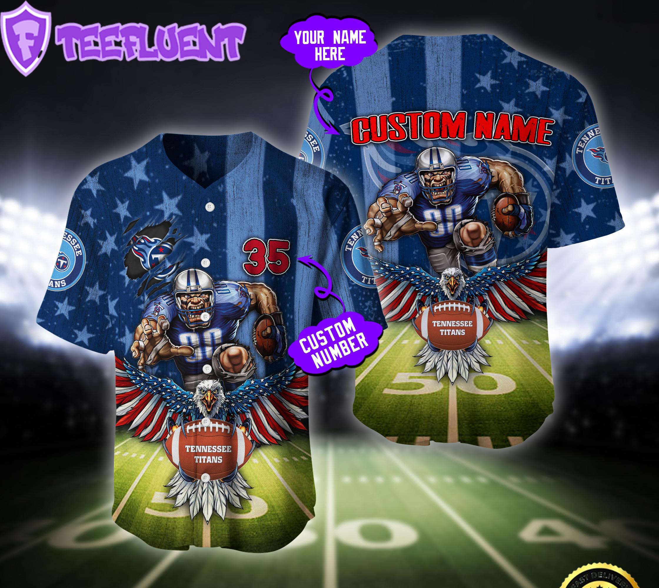 Custom Name Number NFL Tennessee Titans Eagle US Flag x Veterans Baseball Jersey