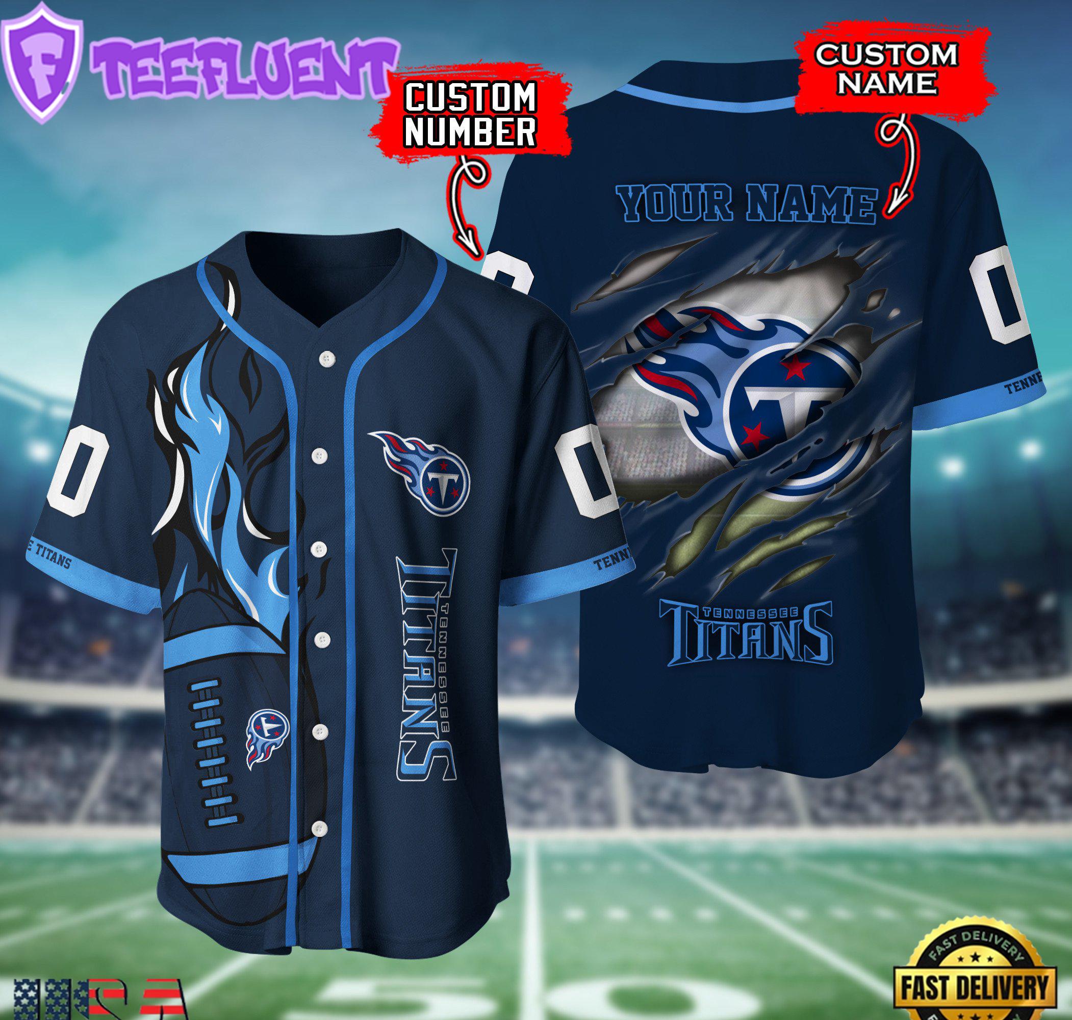 Photos Of Custom Name Number NFL Tennessee Titans Team Logo Litmited Edition Baseball Jersey