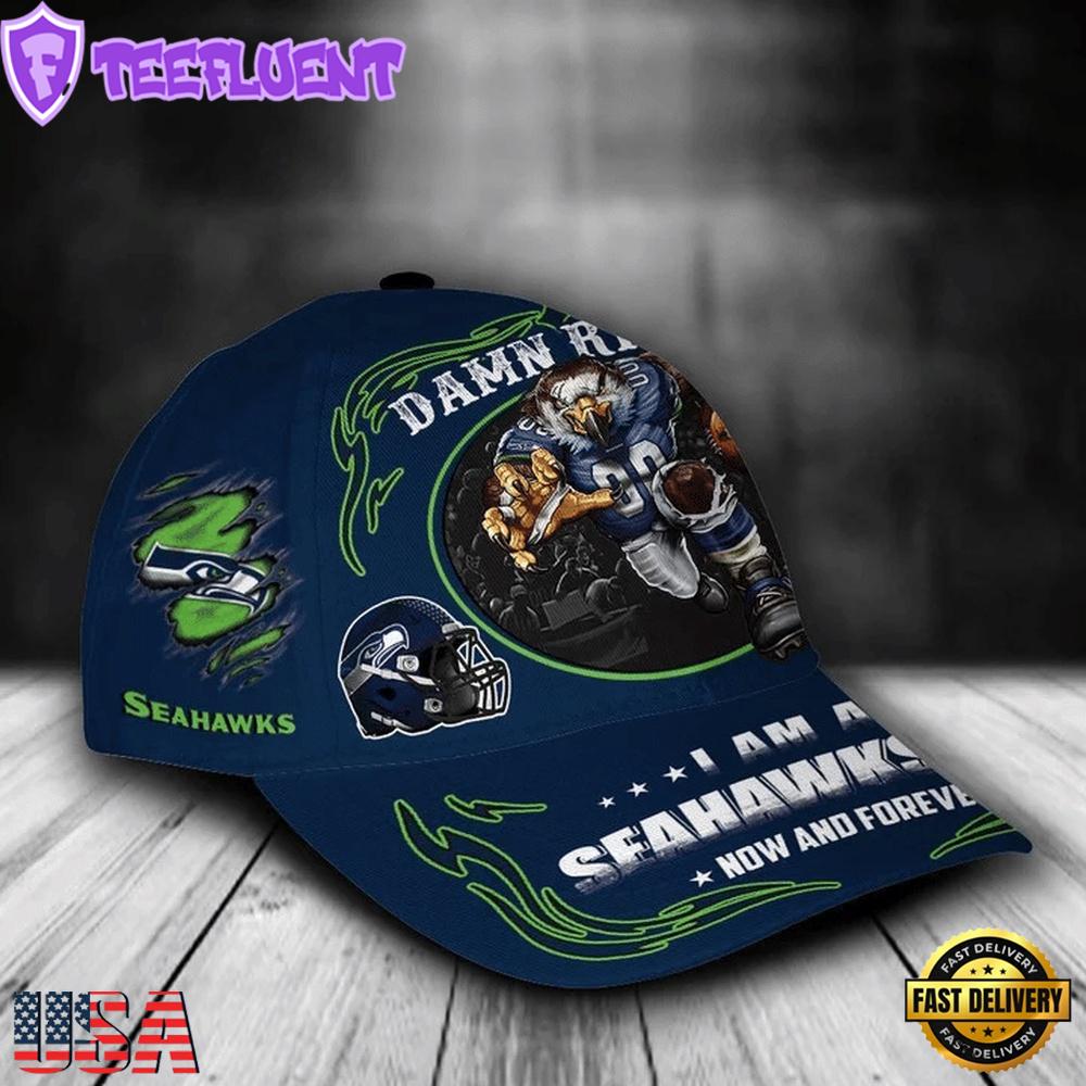 Custom Name Seattle Seahawks Mascot Damn Right Sport Baseball Cap , Vintage Baseball Caps