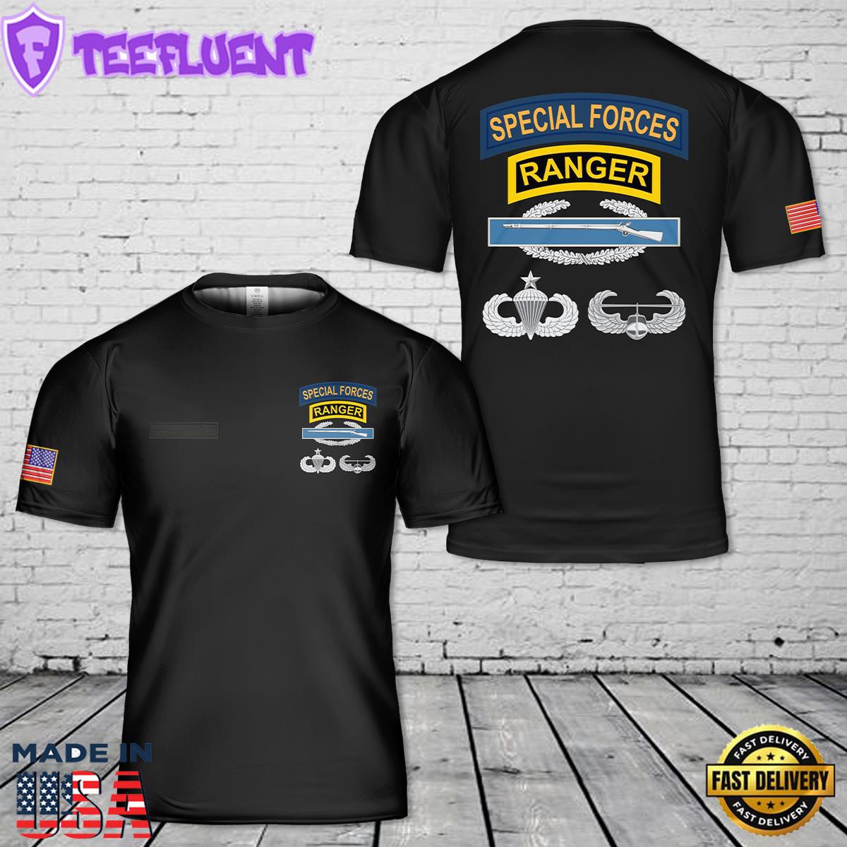 Photos Of Custom Name SF Ranger CIB Airborne Senior Air Assault T-Shirt 3D For Man