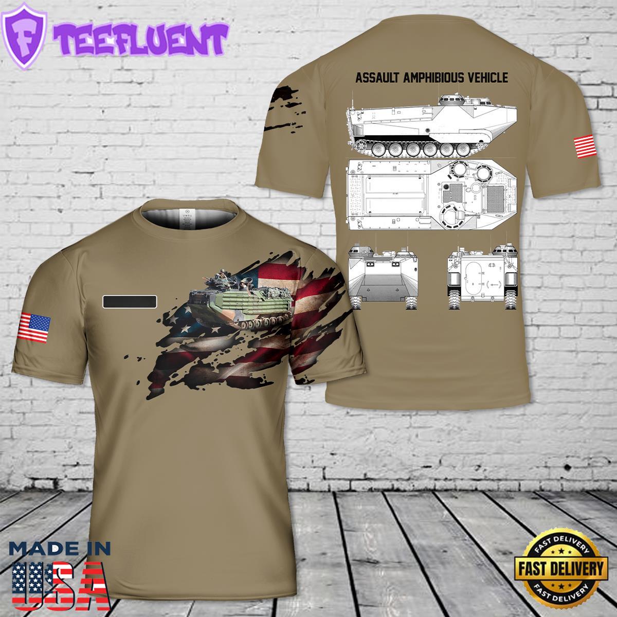 Photos Of Custom Name U.S. Marine Corps Assault Amphibious Vehicle AAV T-Shirt 3D For Man