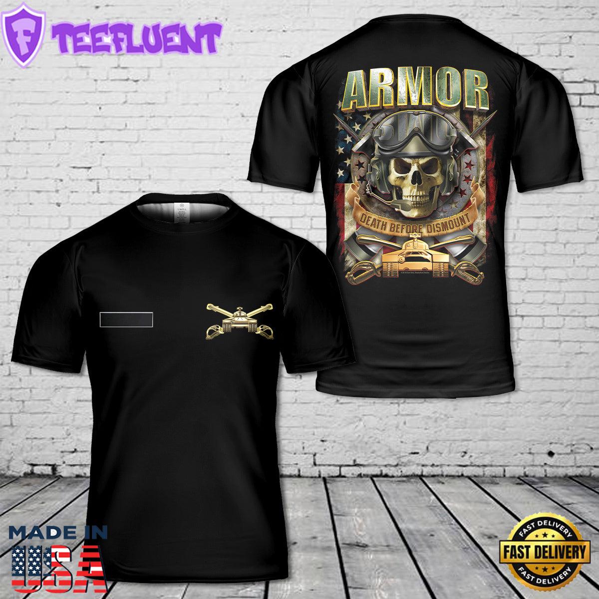 Custom Name US ARMOR – Death Before Dismount T-Shirt 3D For Man