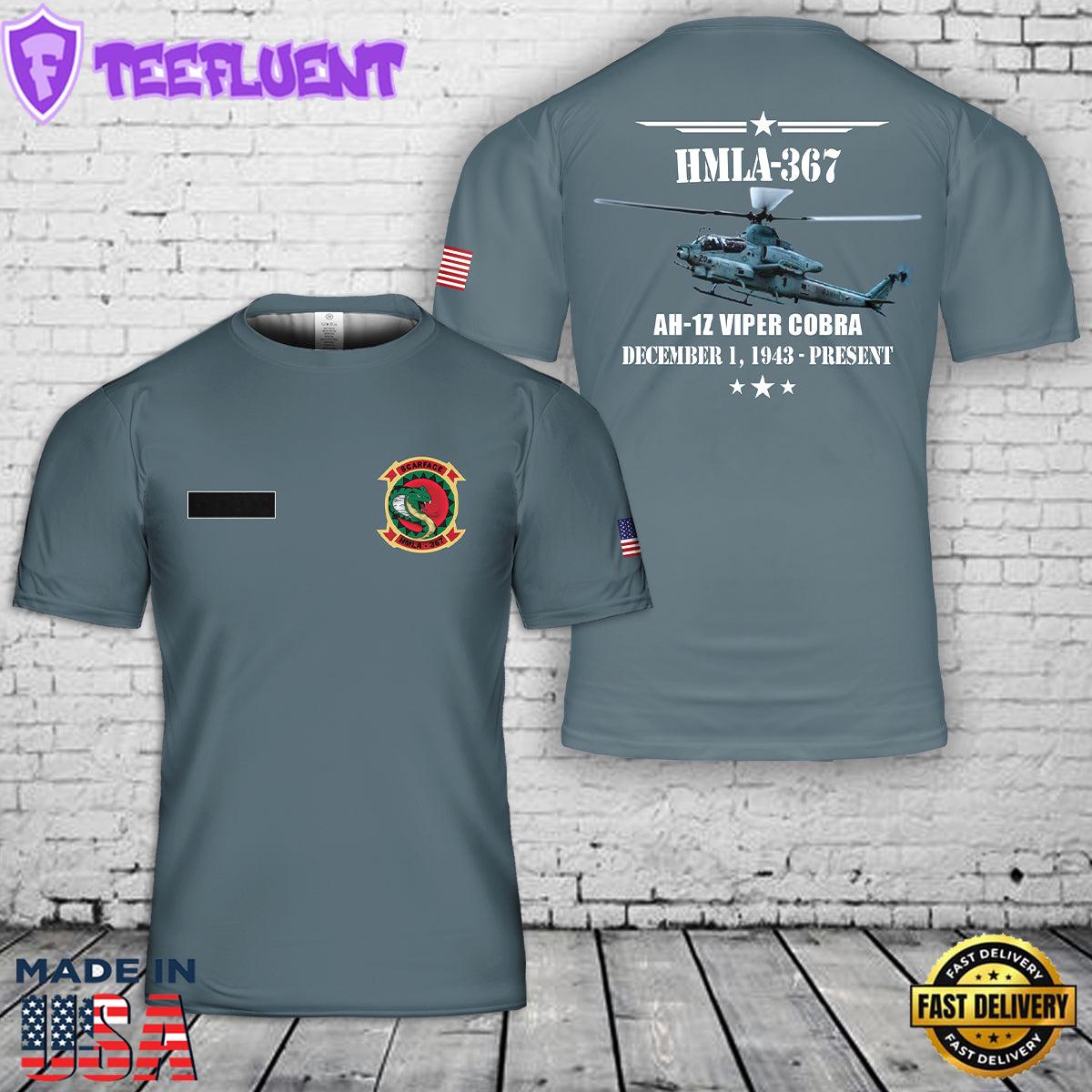 Custom Name US Marine Corps Marine Light Attack Helicopter Squadron 367 (HMLA-367) AH-1Z Viper Cobra T-Shirt 3D For Man