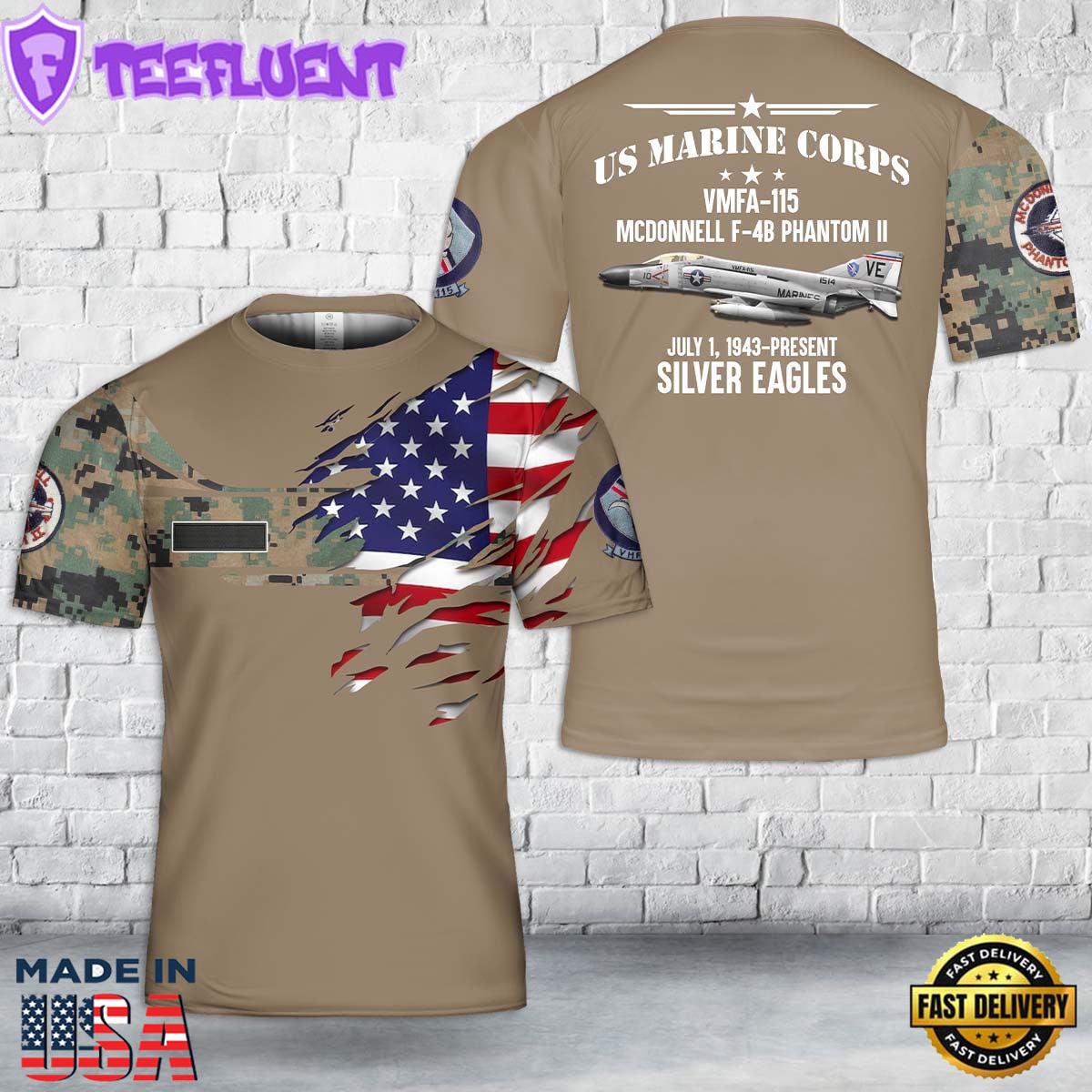 Photos Of Custom Name US Marine Corps McDonnell F-4B Phantom II Of VMFA-115 T-Shirt 3D For Man