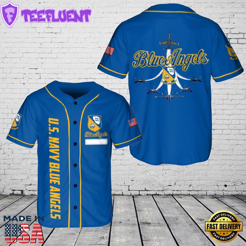 Photos Of Custom Name US Navy Blue Angles AOP Baseball Jersey For Man And Women