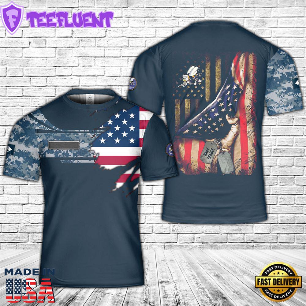 Custom Name US Navy Seabee 3D T-shirt 3 4TH Of July
