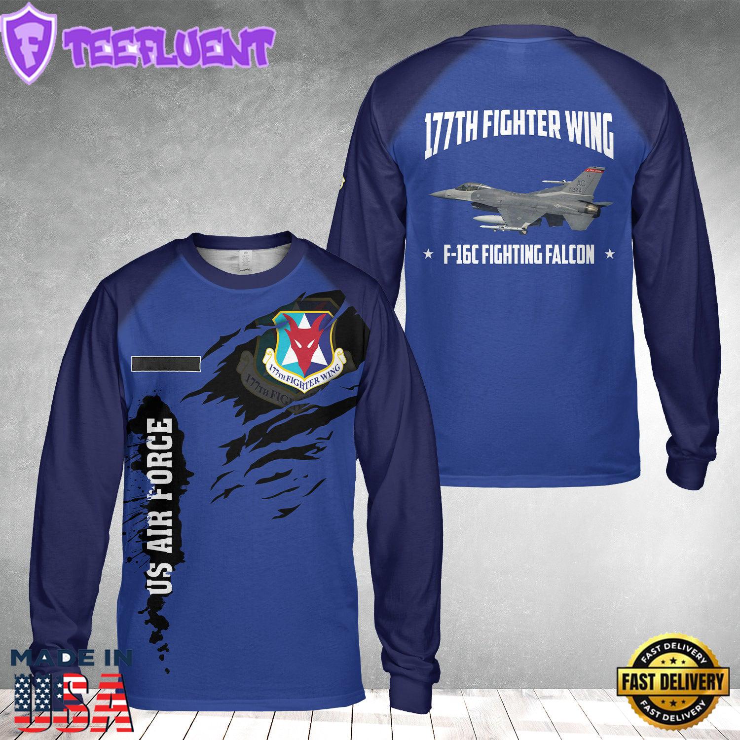Custom Name US New Jersey Air National Guard 177th Fighter Wing F-16C Fighting Falcon AOP Long Sleeve Shirt For Man