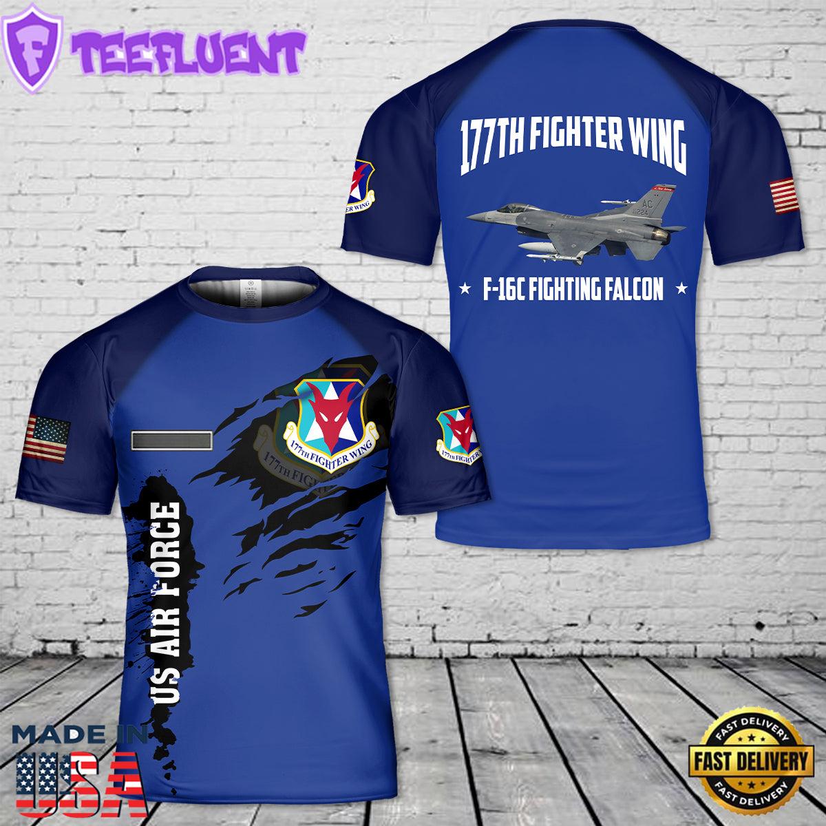Custom Name US New Jersey Air National Guard 177th Fighter Wing F-16C Fighting Falcon T-Shirt 3D For Man