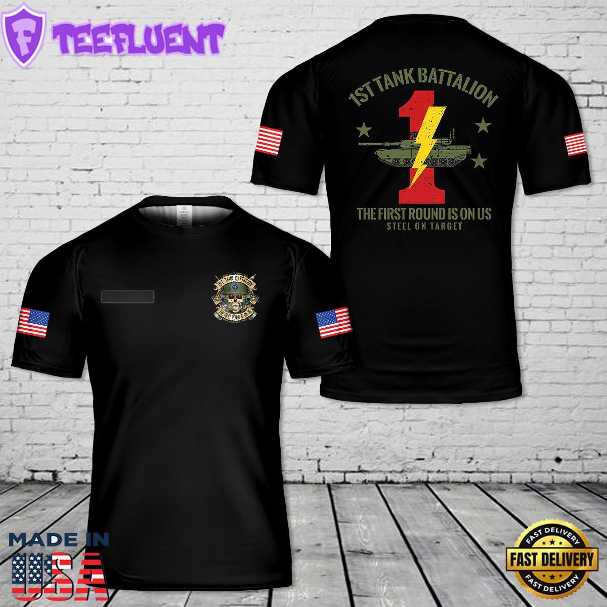Custom Name USMC M1A1 TUSK 1st Tank Battalion, 1st Marines Division T-Shirt 3D For Man