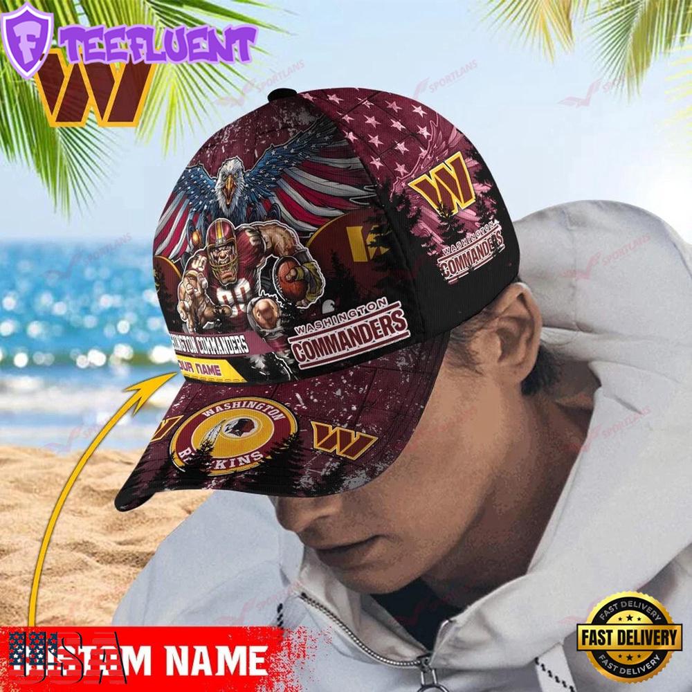 Custom Name Washington Commanders NFL Mascot Eagle Baseball Cap Hats