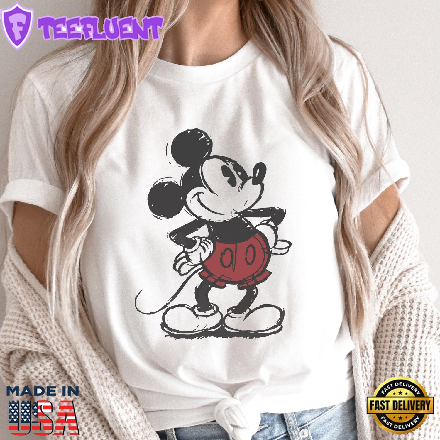 Disney Classic Mickey Mouse Pose T-Shirt Disney Character Tee for Disneyland Vacation Gift Summer