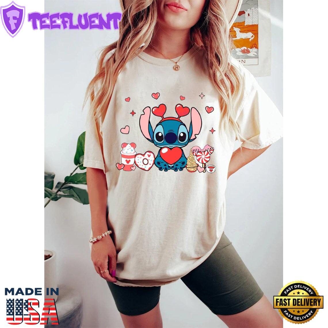 Photos Of Disney Cute Stitch And Angel Valentines Gift Funny T-Shirt Gift Summer