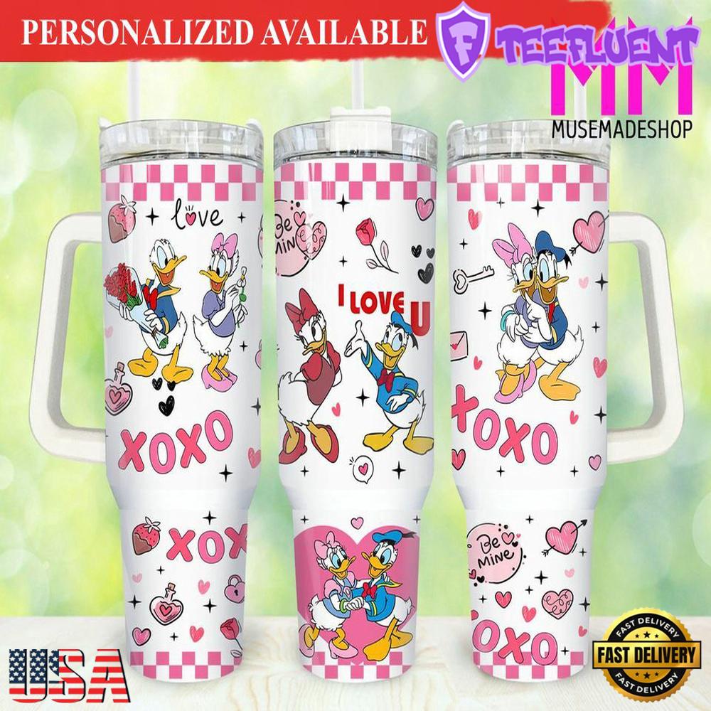 Photos Of Disney Donal Duck Valentines Cartoon 40oz Tumbler with Handle , Gift For Valentine’s Days