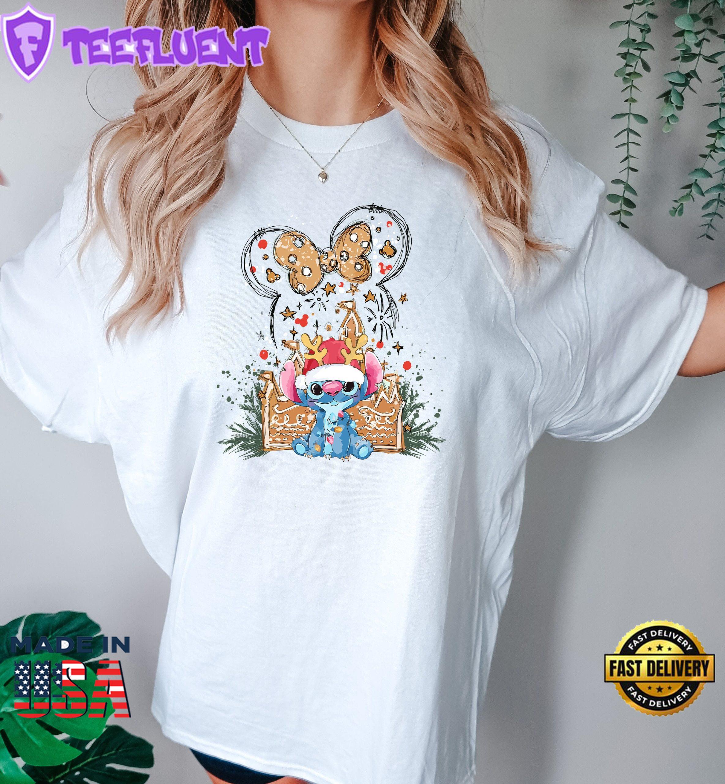 - Cute Disney Stitch and Ariel T-Shirt Little Mermaid Princess Tee Disneyland WDW Family Outfits Gift Summer