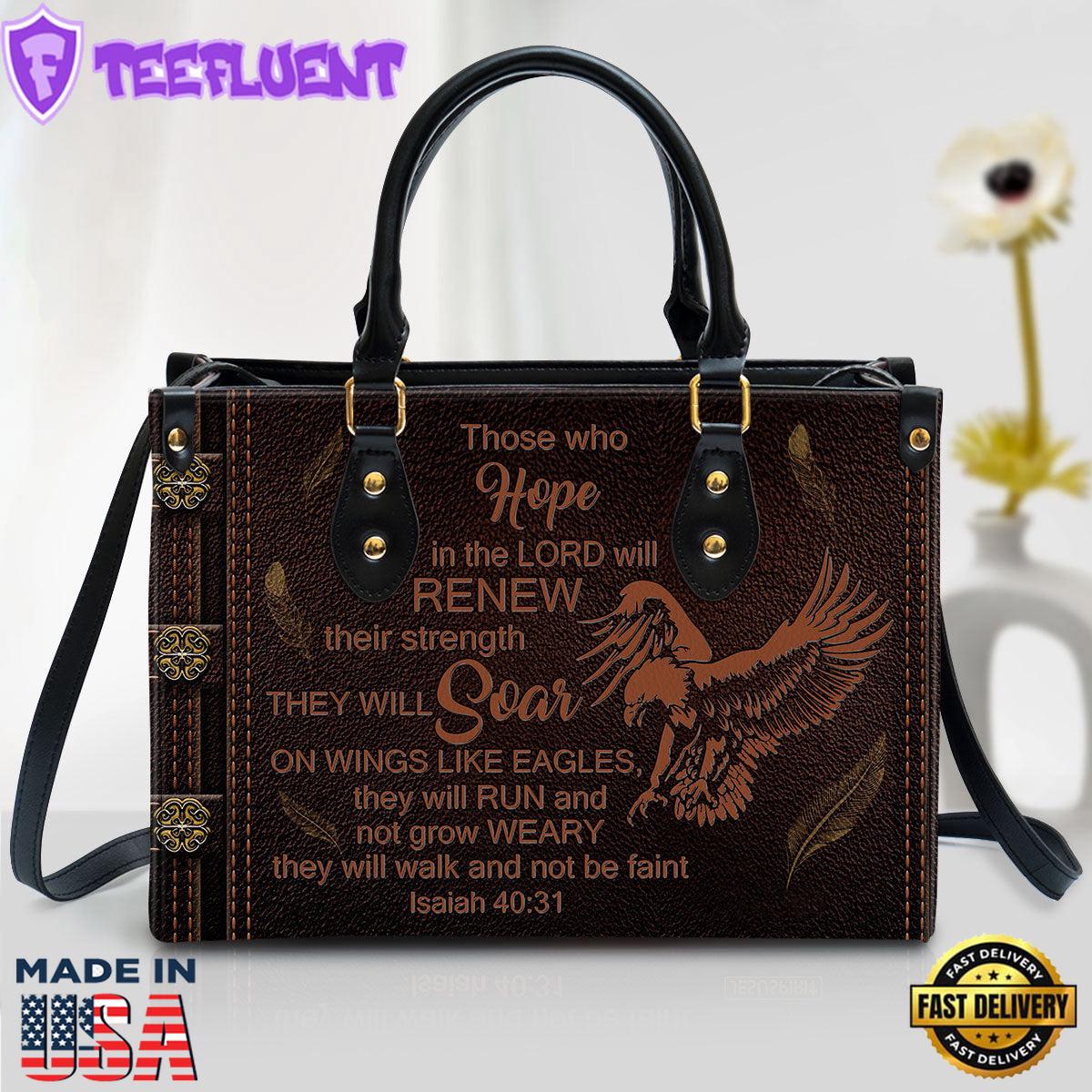 Product Details Eagle Those Who Hope In The Lord Will Renew Their Strength Leather Handbag Christ Gifts Leather Bags