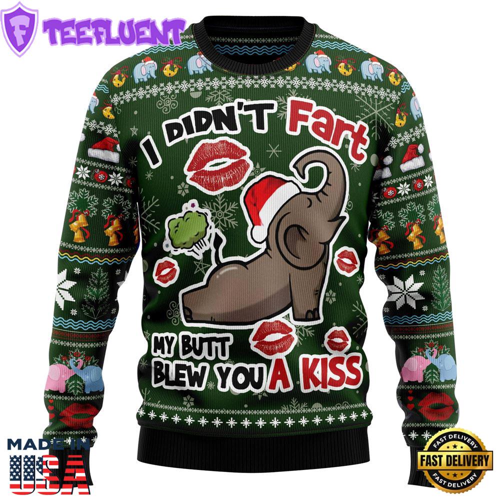 Photos Of Elephant I Didn’t Fart My Butt Blew You A Kiss Ugly Christmas Sweater Gift Xmas