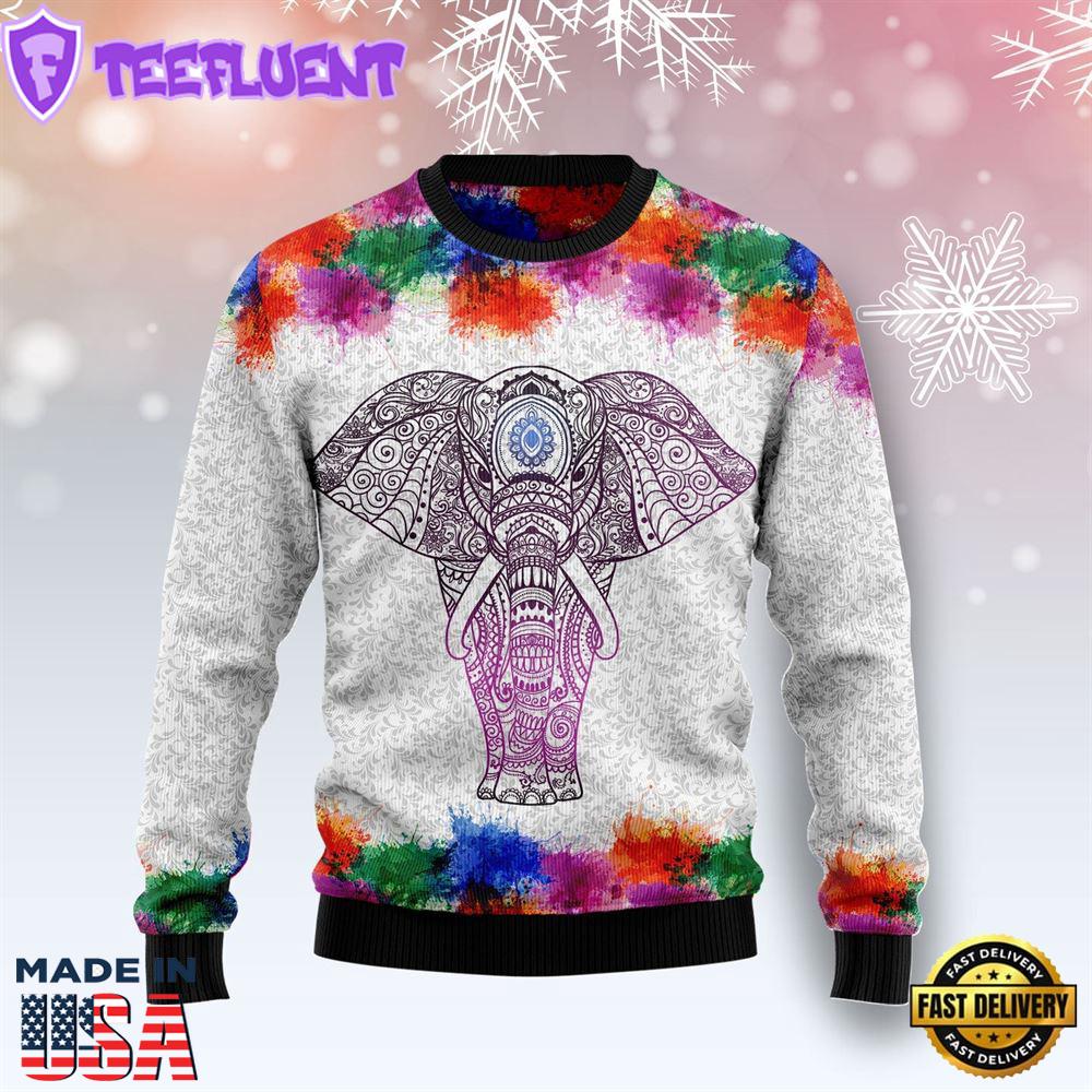 Product details: Elephant Mandala Color Ugly Christmas Sweater Gift Xmas