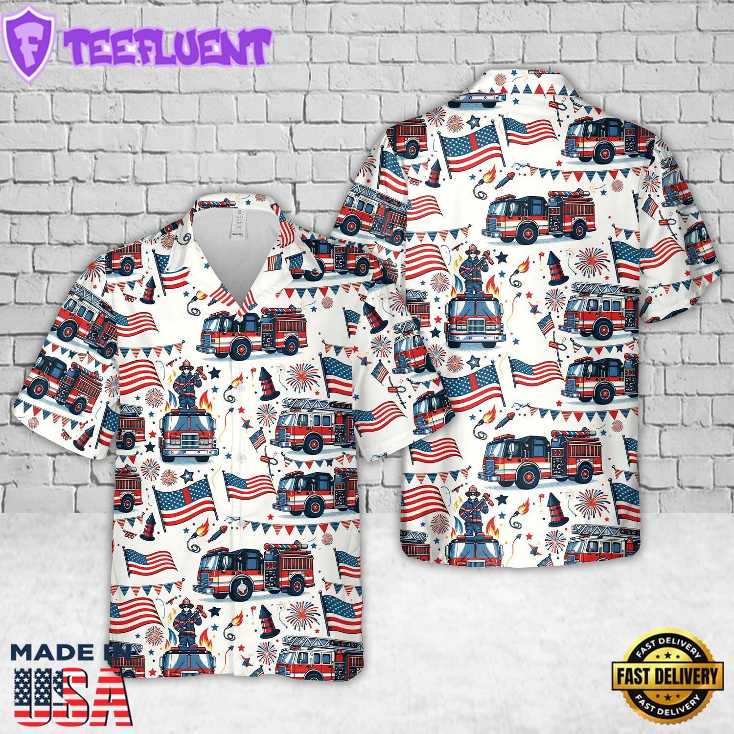 - Fire Trucks Firefighter, 4th Of July Hawaiian Shirt 1 Gift Father Day