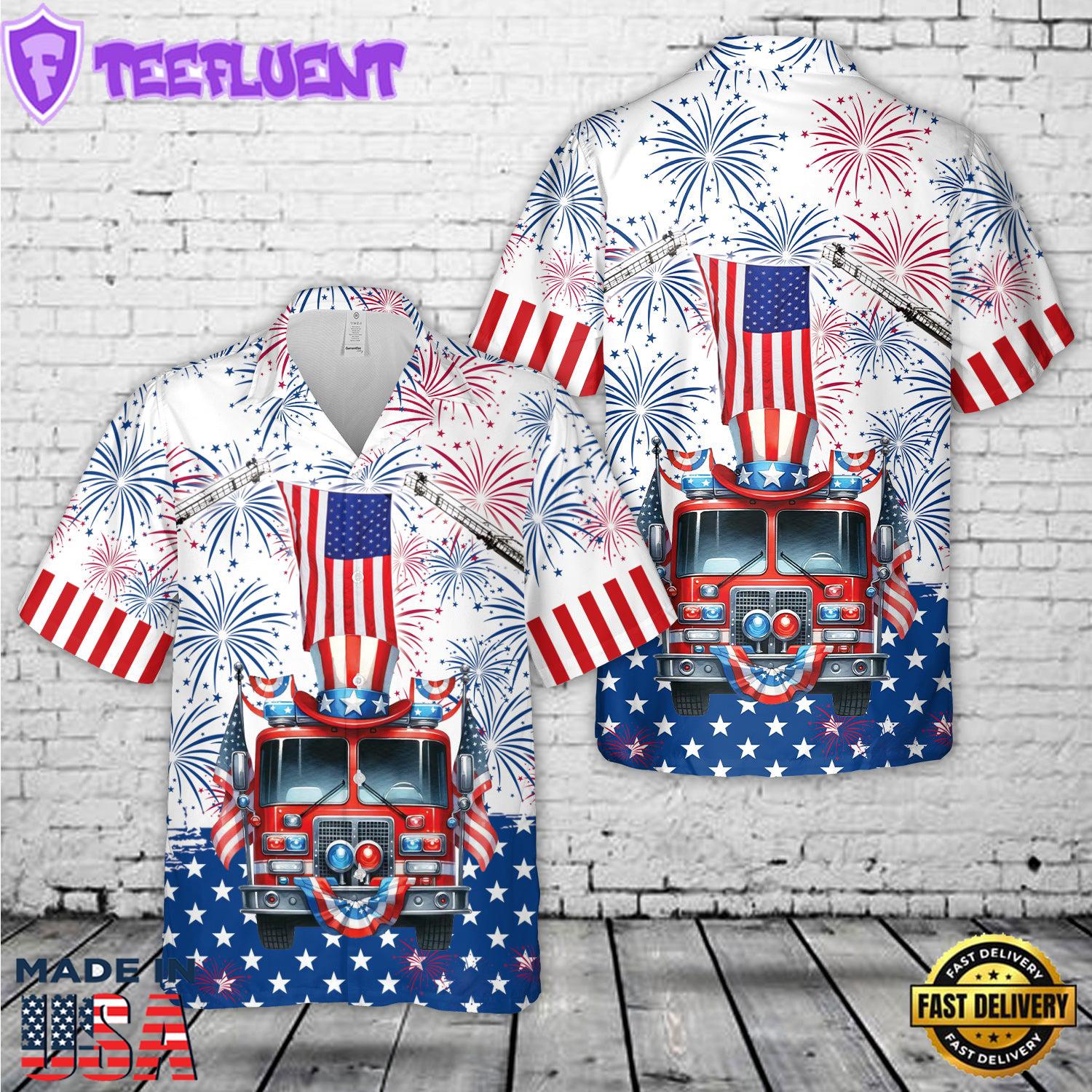 - Fire Trucks Firefighter, 4th Of July Hawaiian Shirt 1 Gift Father Day