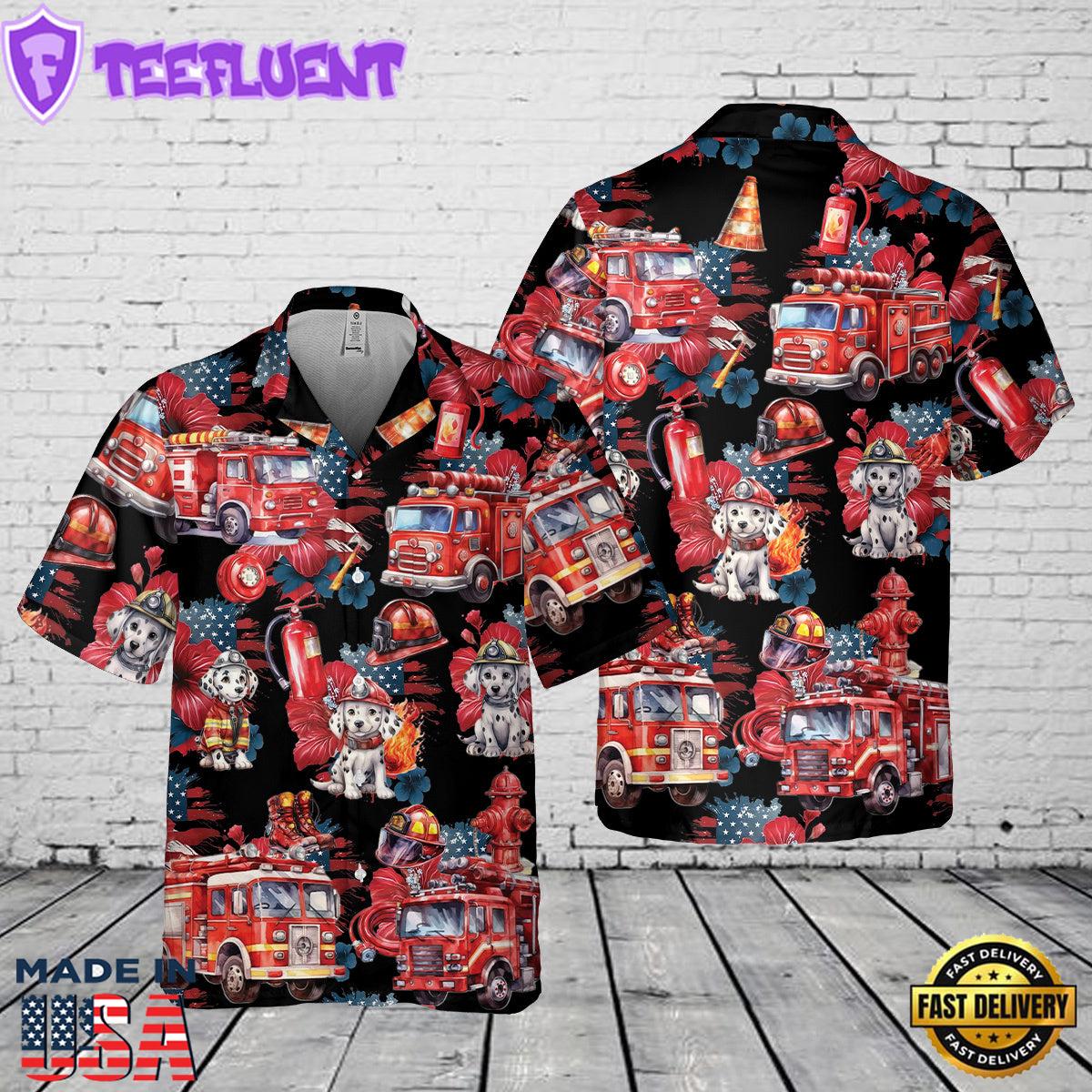 - Fire trucks Firefighter Hawaiian Shirt 3 Gift Father Day
