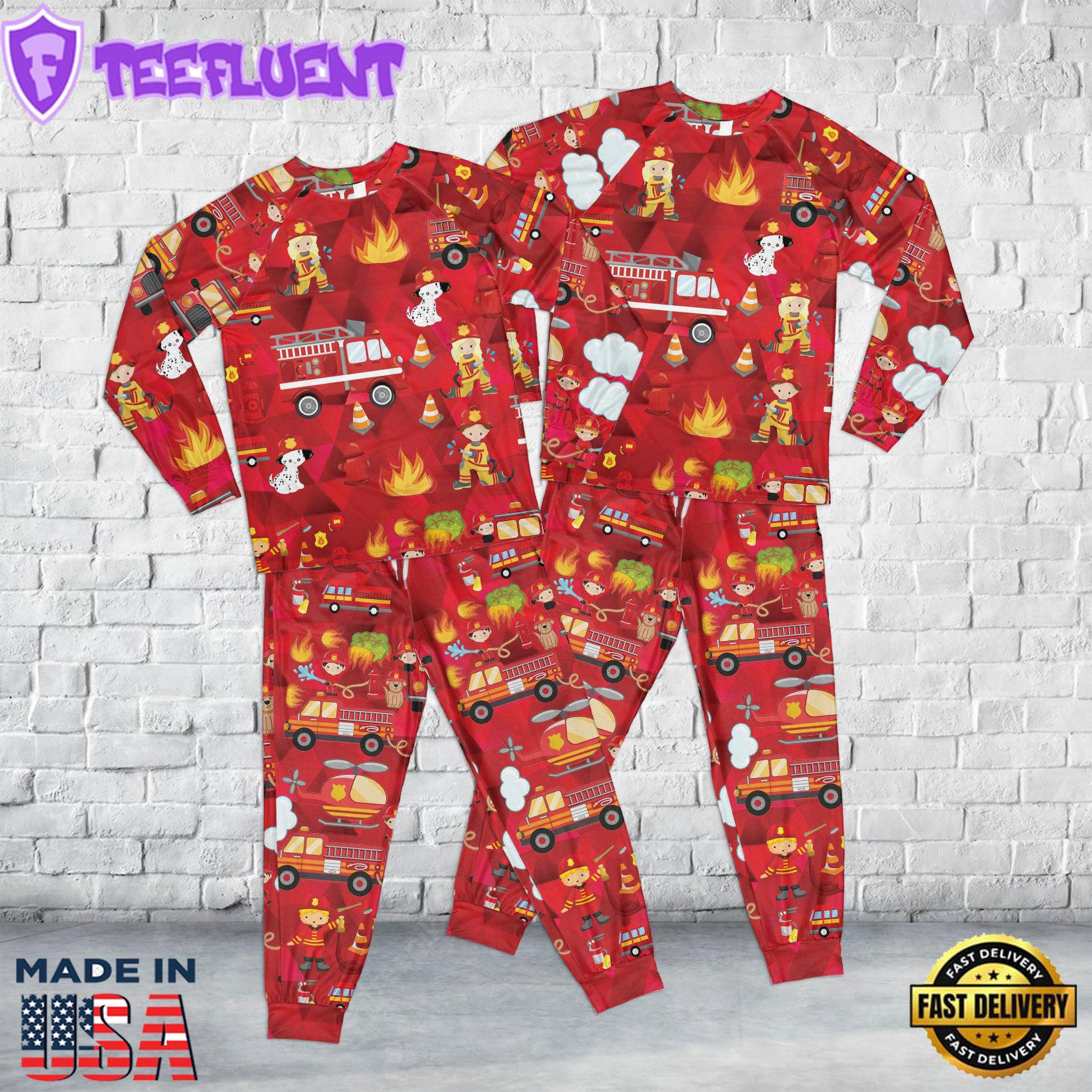 Fire Trucks Kid Raglan Pajamas Set Gift Father Day