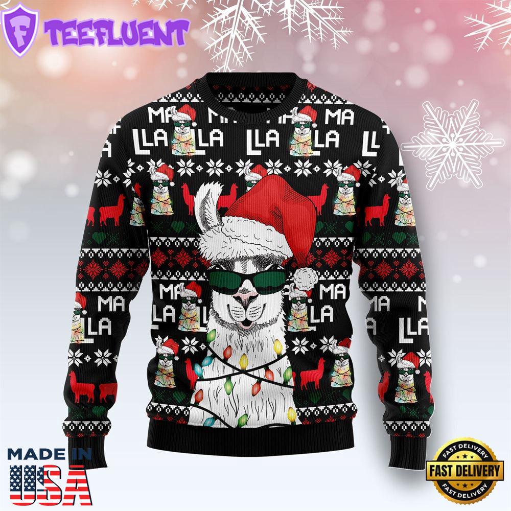 Photos Of Funny Llama Christmas Light Ugly Christmas Sweater Gift Xmas