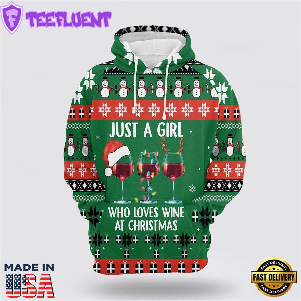 Girl Loves Wine At Christmas All Over Print 3D Hoodie