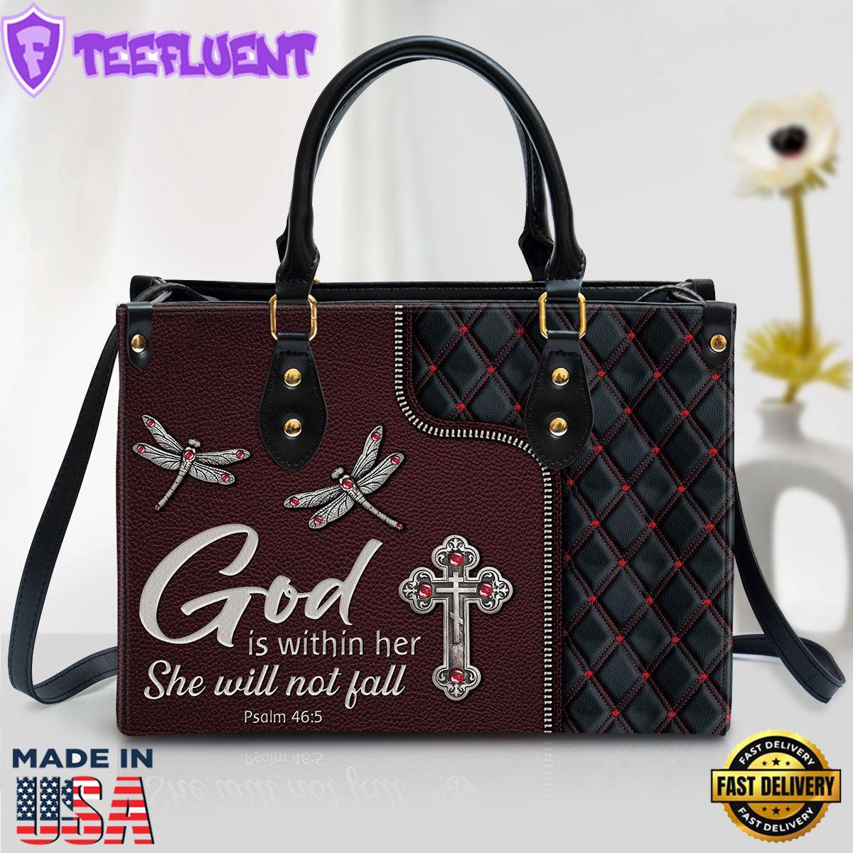 God Is Within Her She Will Not Fall Pretty Cross Leather Bag Christ Gifts Leather Bags The leather handbag is a timeless accessory that exudes elegance and sophistication. Crafted from high-quality, supple leather, it features a smooth finish that enhances its luxurious appeal. With a spacious interior, it offers ample room for essentials like a wallet, phone, and makeup. The handbag is often adorned with meticulous stitching and subtle hardware details, adding a touch of charm. Its versatile design allows it to transition seamlessly from casual outings to formal events, making it a staple in any wardrobe. Whether carried by hand or slung over the shoulder, this leather handbag is both a practical choice and a statement piece.