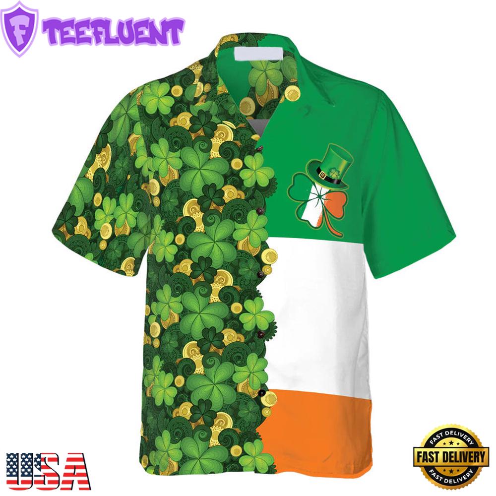Gold Coins Shamrock Saint Patrick’S Day Irish Ireland Flag Hawaiian Shirt , Vintage Hawaiian Shirts