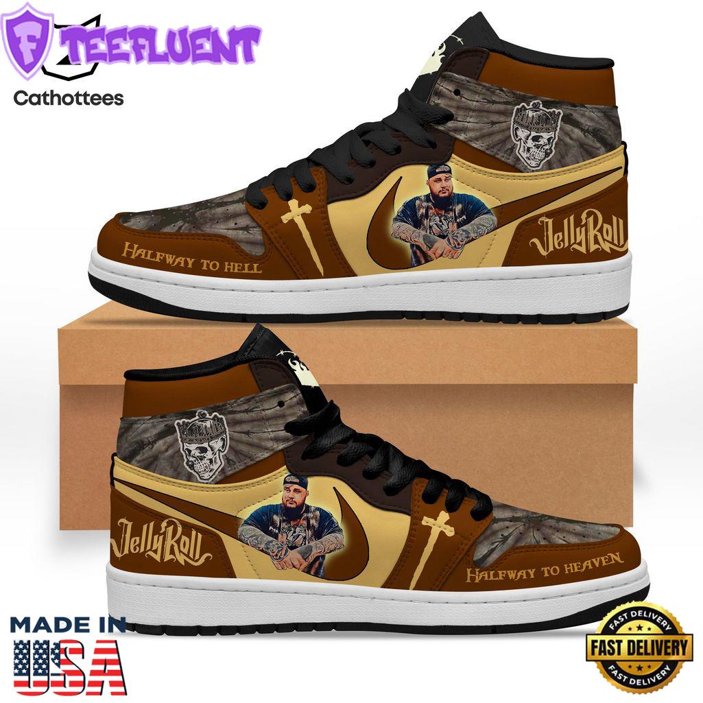 Halfway To Hell Jelly Roll Portrait Nike Logo Design Air Jordan 1 High Top 1