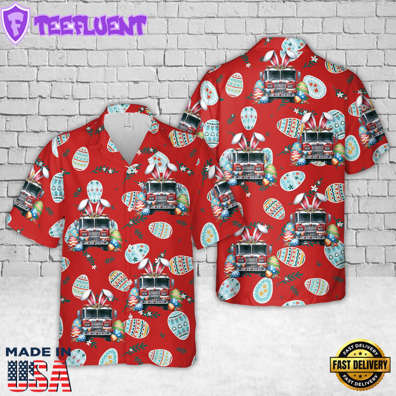 Happy Easter Fire Truck Hawaiian Shirt Gift Father Day