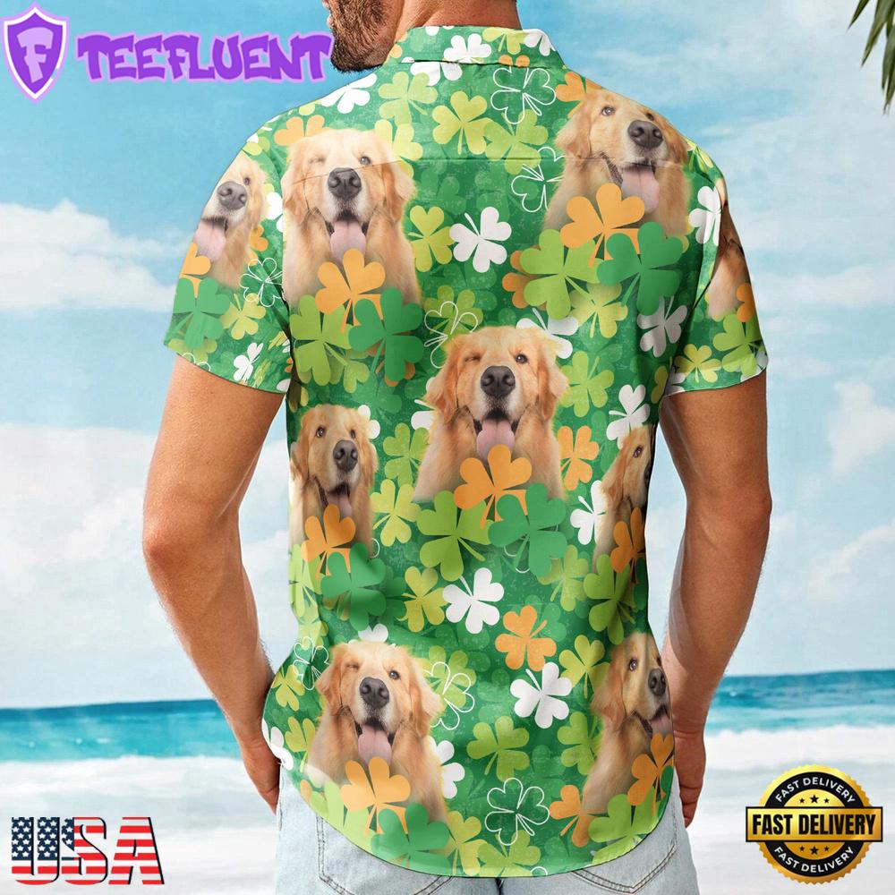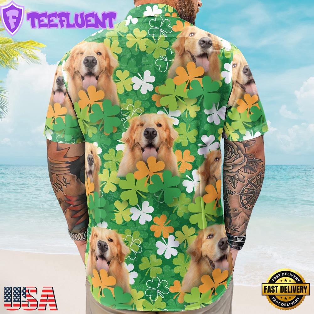 Happy St Patrick Day Together With Dog Custom Photo Hawaiian Shirts , Vintage Hawaiian Shirts
