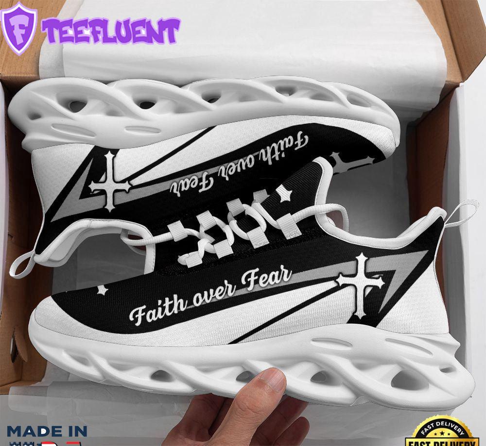 - Jesus Faith Over Fear Running Sneakers Black White Max Soul Shoes For Men And Women Gift Xmas