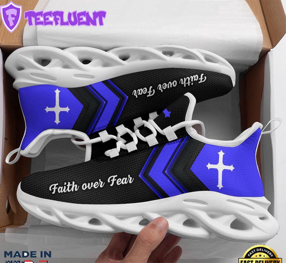 - Jesus Faith Over Fear Running Sneakers Blue And Black Max Soul Shoes For Men And Women Gift Xmas