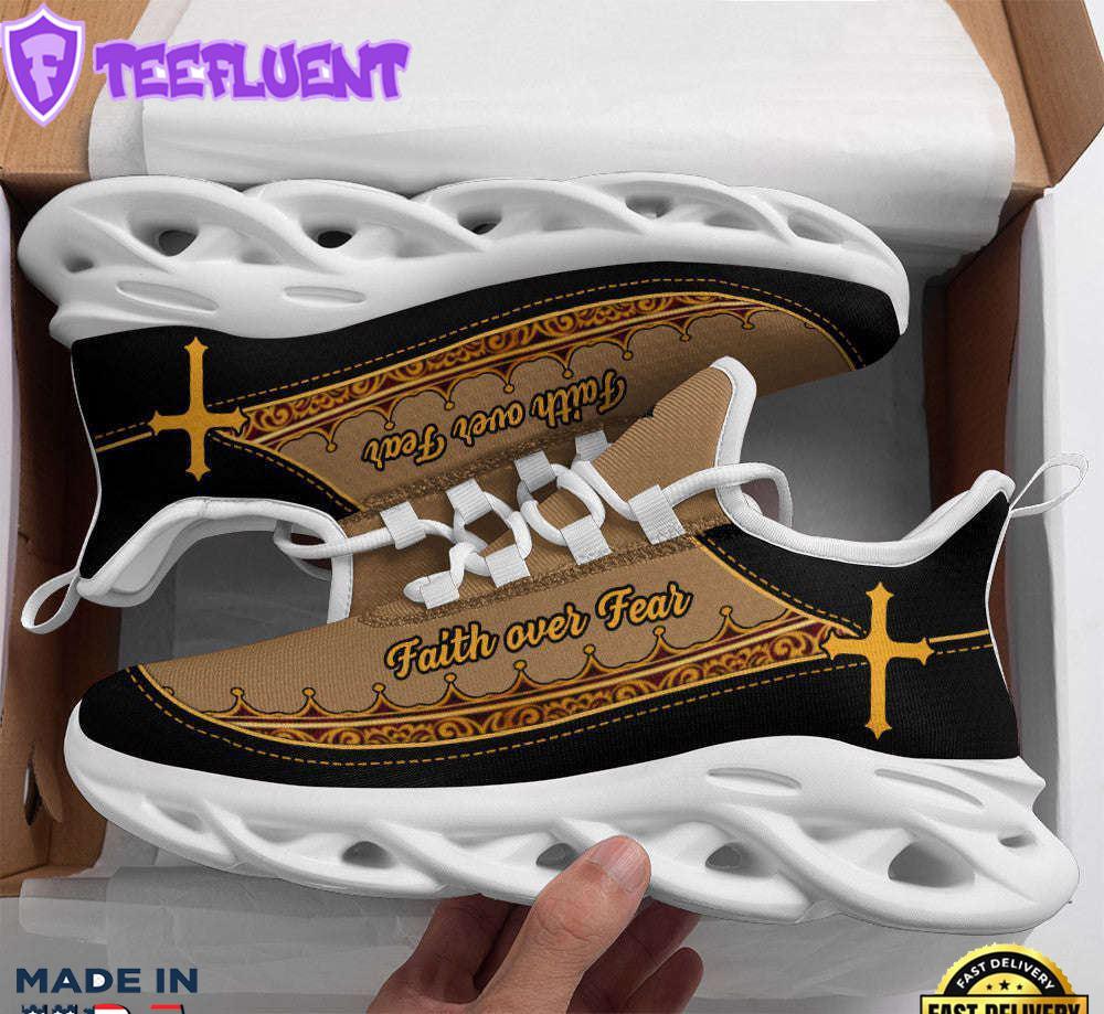 - Jesus Faith Over Fear Running Sneakers White Sole Max Soul Shoes For Men And Women Gift Xmas