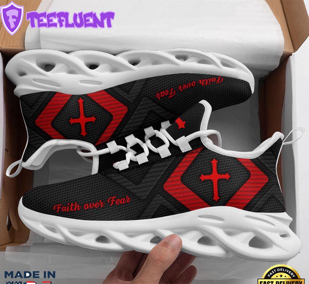 Jesus Faith Over Fear Running Sneakers Red And Black Max Soul Shoes For Men And Women Gift Xmas