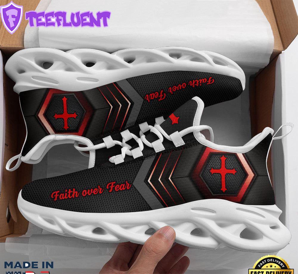 - Jesus Faith Over Fear Running Sneakers White Sole Max Soul Shoes For Men And Women Gift Xmas