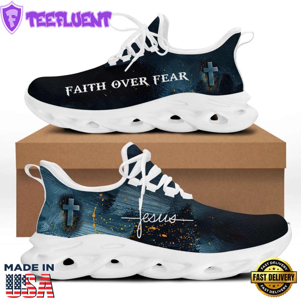 - Jesus Faith Over Fear Running Sneakers Black Blue Max Soul Shoes For Men And Women Gift Xmas